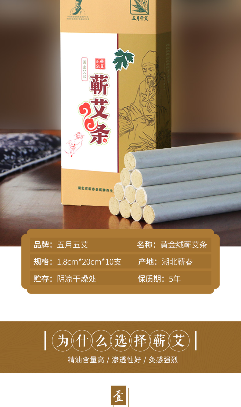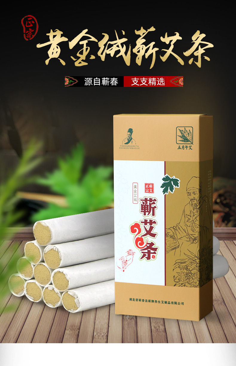 五月(yuè)(yuè)午艾黃(huáng)金(jīn)絨蕲艾條(簡裝)